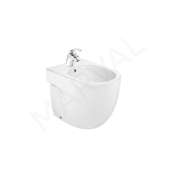 Bidé adosado a pared compacto. Incluye juego de fijación. No incluye grifería ni tapa de bidé.