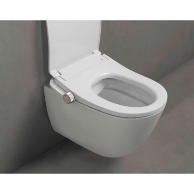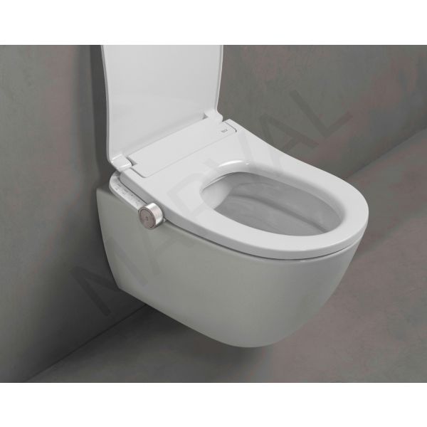 Smart toilet suspendido Roca Rimless®. Incluye tapa y asiento con funciones de lavado y secado. Necesita toma de red. Compatible con Sistemas de Instalación Roca Duplo One / Duplo S. Descarga dual 4,5/3L. Configurable y controlable a través de APP móvil. Para su óptimo funcionamiento se recomienda realizar periódicamente las tareas de mantenimiento y limpieza con los productos consumibles compatibles (ver más abajo en Productos Consumibles Compatibles).