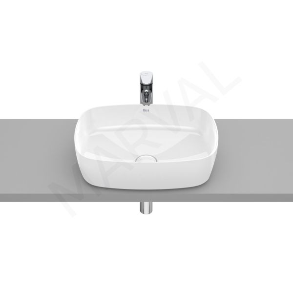 Lavabo de Fineceramic® de sobre encimera. No incluye grifería. Incluye desagüe universal con tapón fijo abierto cerámico de Ø72 mm.