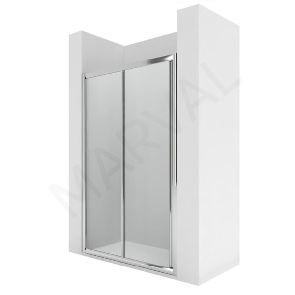 Frontal ducha de 1 hoja corredera + 1 fija. Para instalar entre paredes o con 1 lateral fijo LF. Cristal transparente y perfil plata brillo.