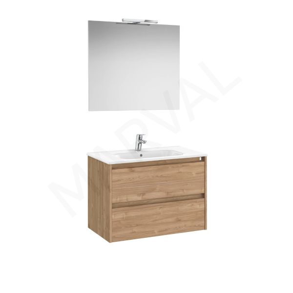 Pack - Conjunto de mueble base de dos cajones, lavabo, espejo Victoria y aplique LED Starlight. No incluye grifería.