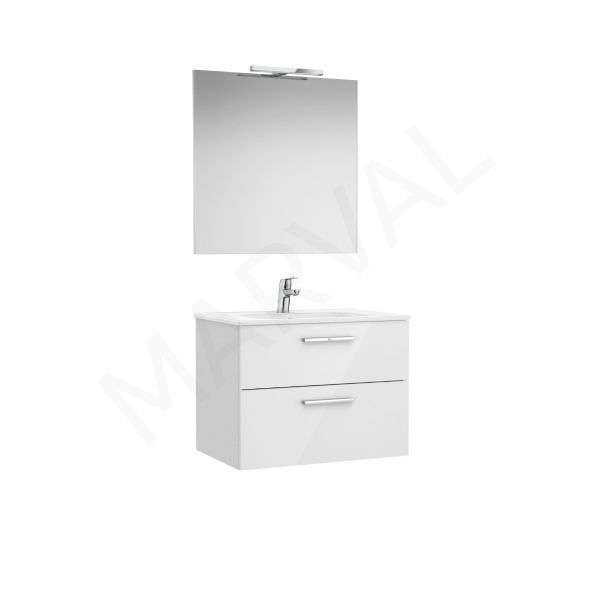 Pack - Conjunto de mueble base de dos cajones, lavabo, espejo y aplique LED Starlight. Sifón no incluido. No incluye grifería.